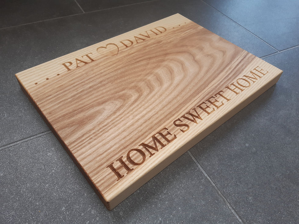 At Mungo & Co., we create handcrafted wooden cutting boards and bread boards in the UK, combining durability with timeless style. Made from high-quality wood, our chopping boards are perfect for food prep and serving. We specialise in personalised chopping boards, offering custom engraving for unique gifts. Ideal for weddings, birthdays, and housewarmings, our engraved wooden boards are practical, long-lasting, and beautifully made for any kitchen.